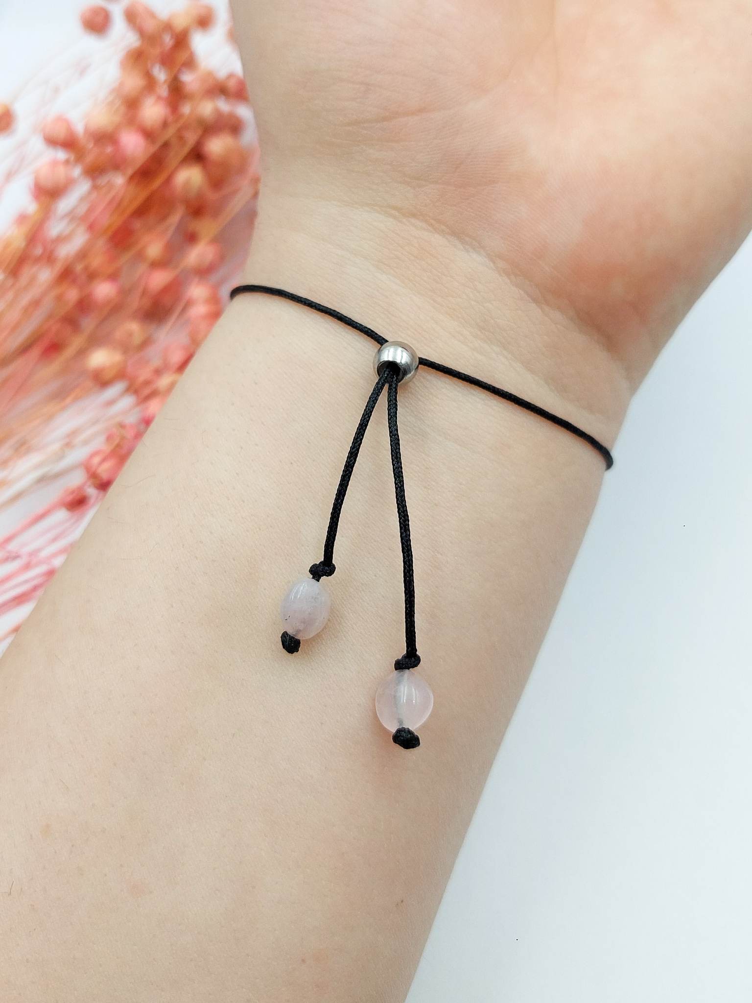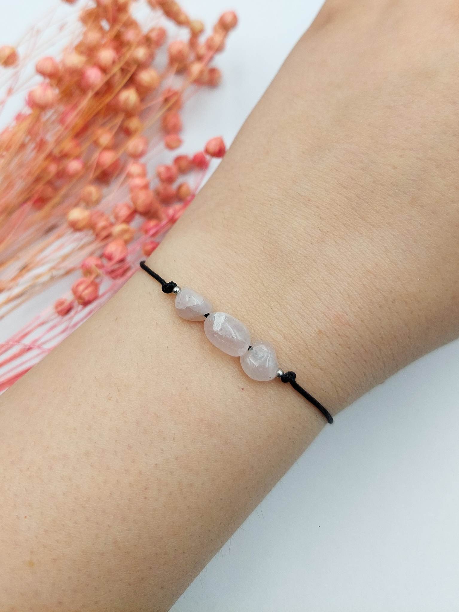 Bransoletka afirmacyjna "Miłość" z kwarcem różowym.