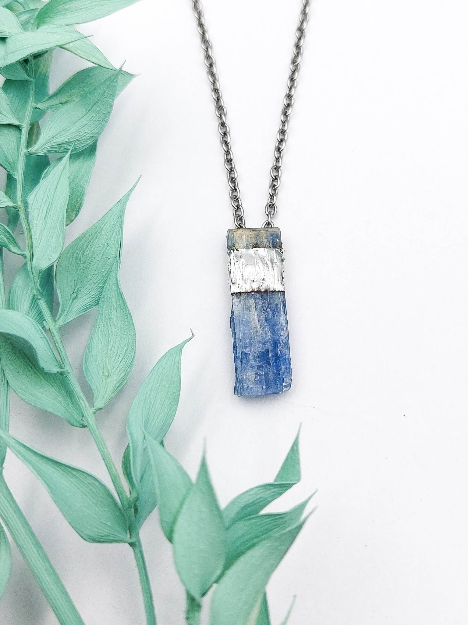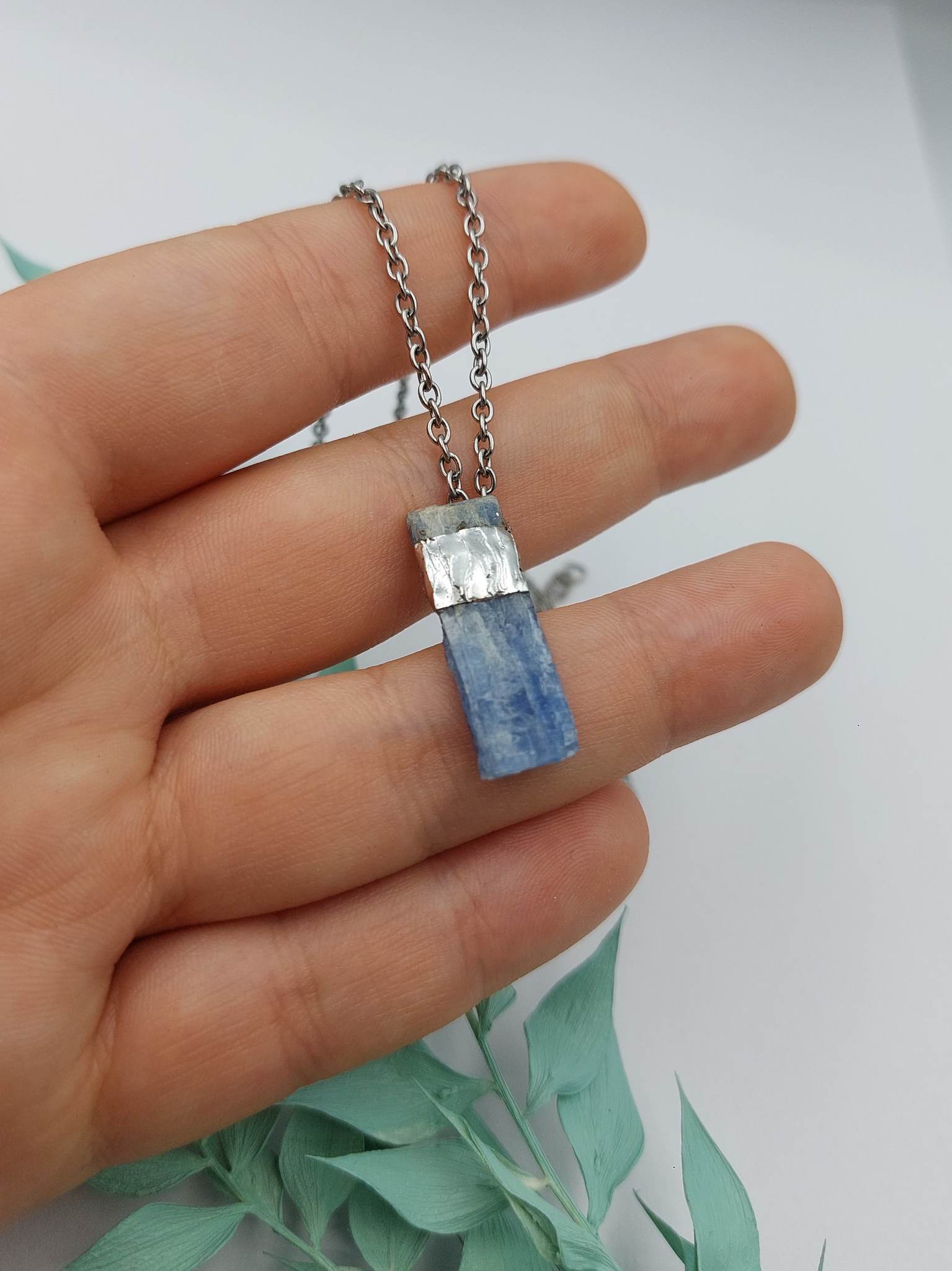 Cyjanit (Kyjanit) to wyjątkowy w swej budowie minerał o niebieskiej barwie z magiczną, srebrzystą powierzchnią, której intensywność zmienia się wraz ze zmianą kąta padania światła. Delikatny w swej barwie, wyrazisty w strukturze. Niezwykle elegancki, nie można przejść obok niego obojętnie.