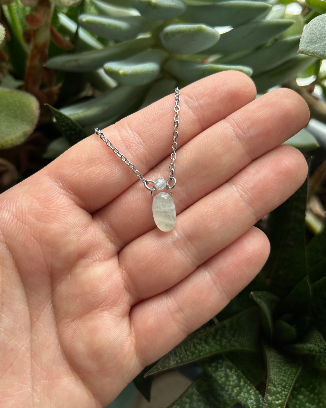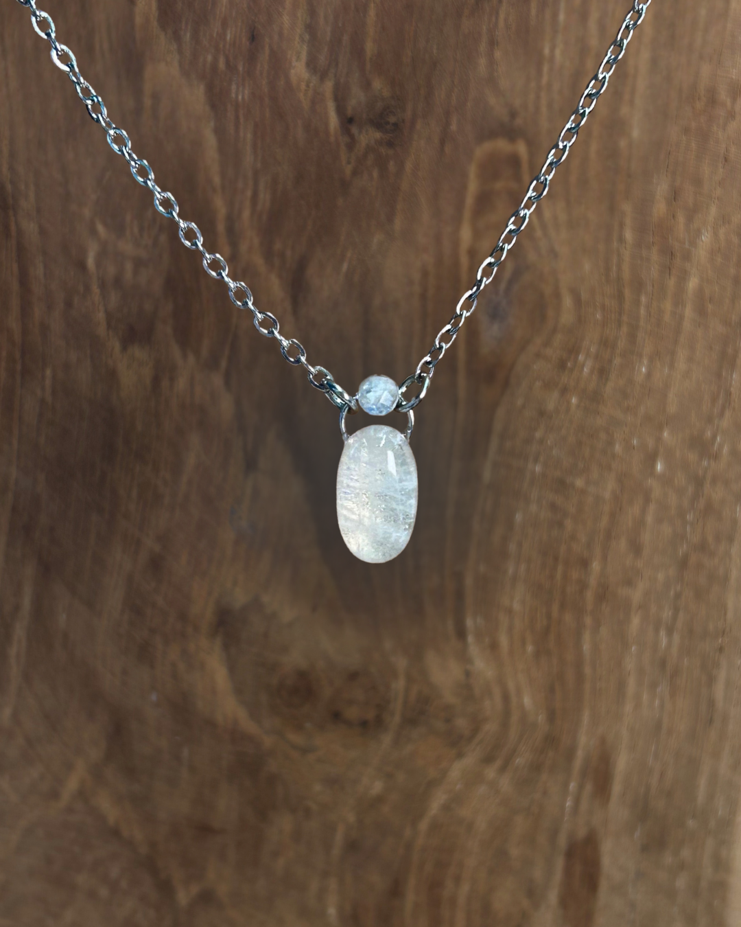 Naszyjnik z Kamieniem Księżycowym i Kwarcem