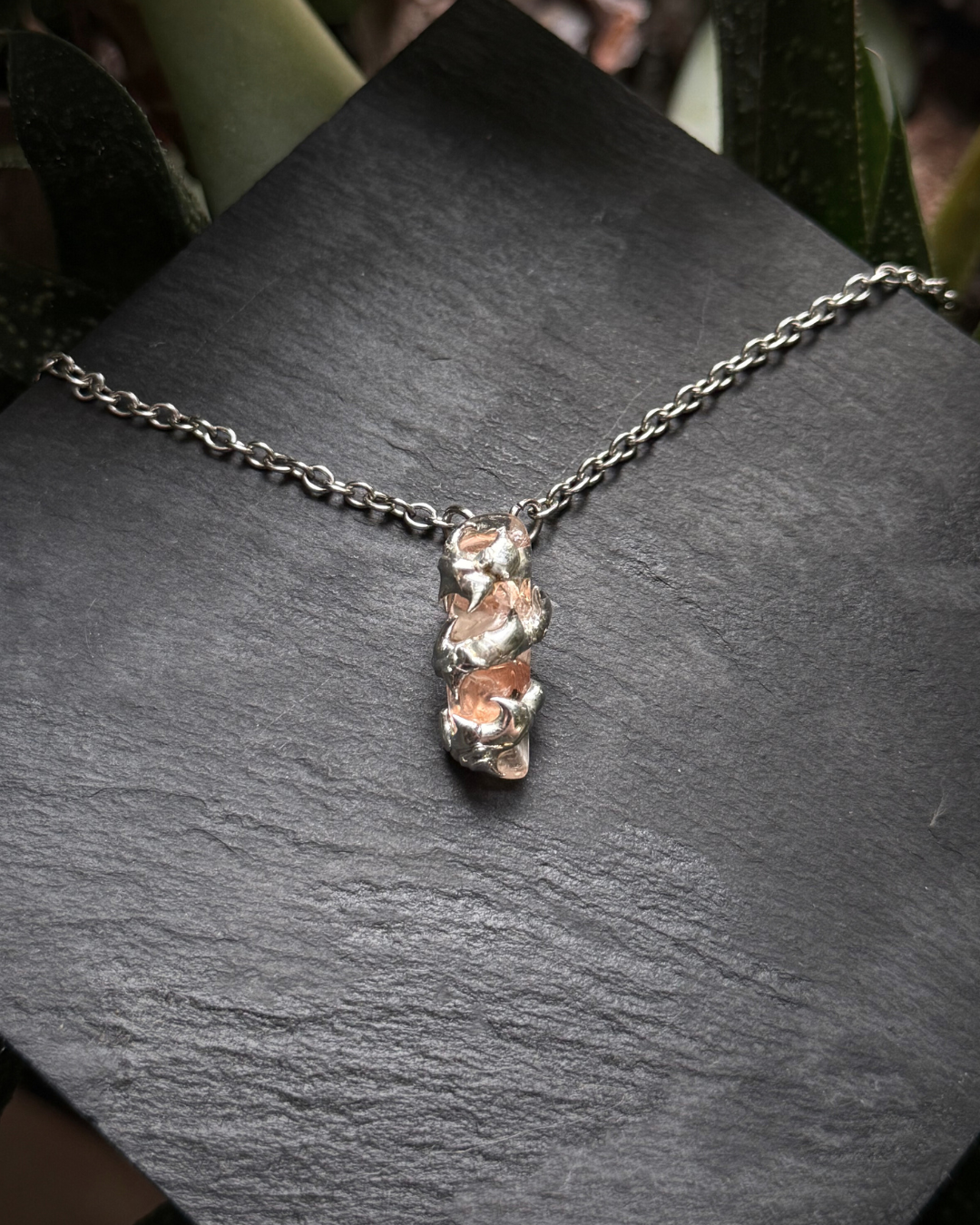 Naszyjnik posiada ostre krawędzie - nie zaczepiają one skóry podczas swobodnego noszenia, ale należy uważać przy zakładaniu go do swetrów czy łatwo haczących się materiałów ;)