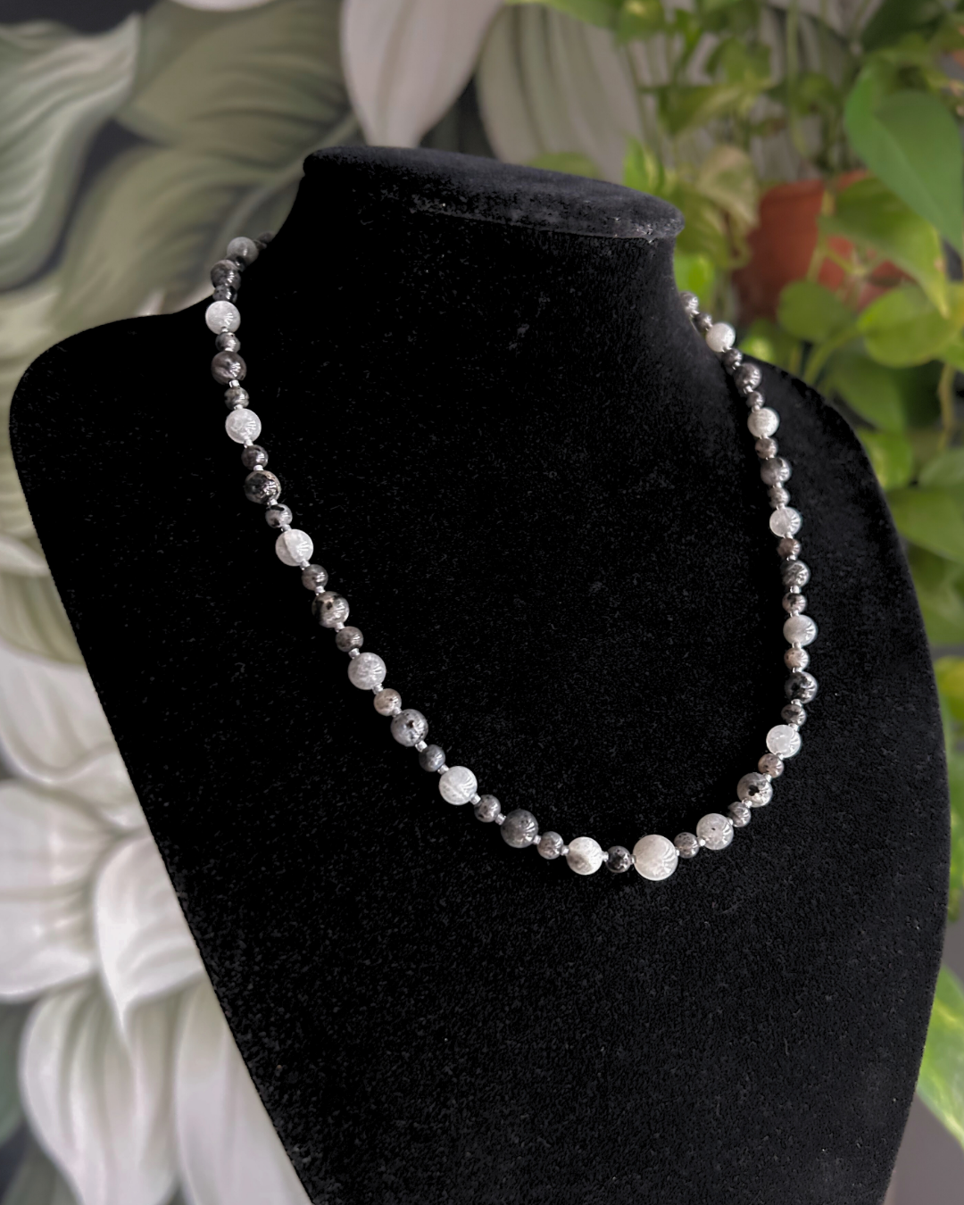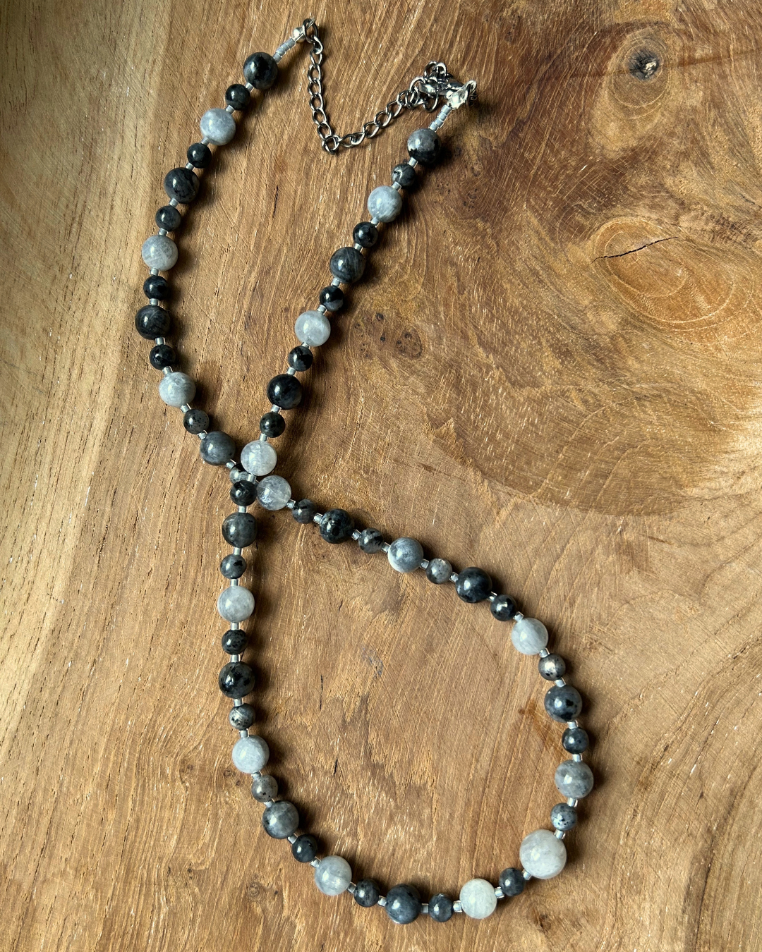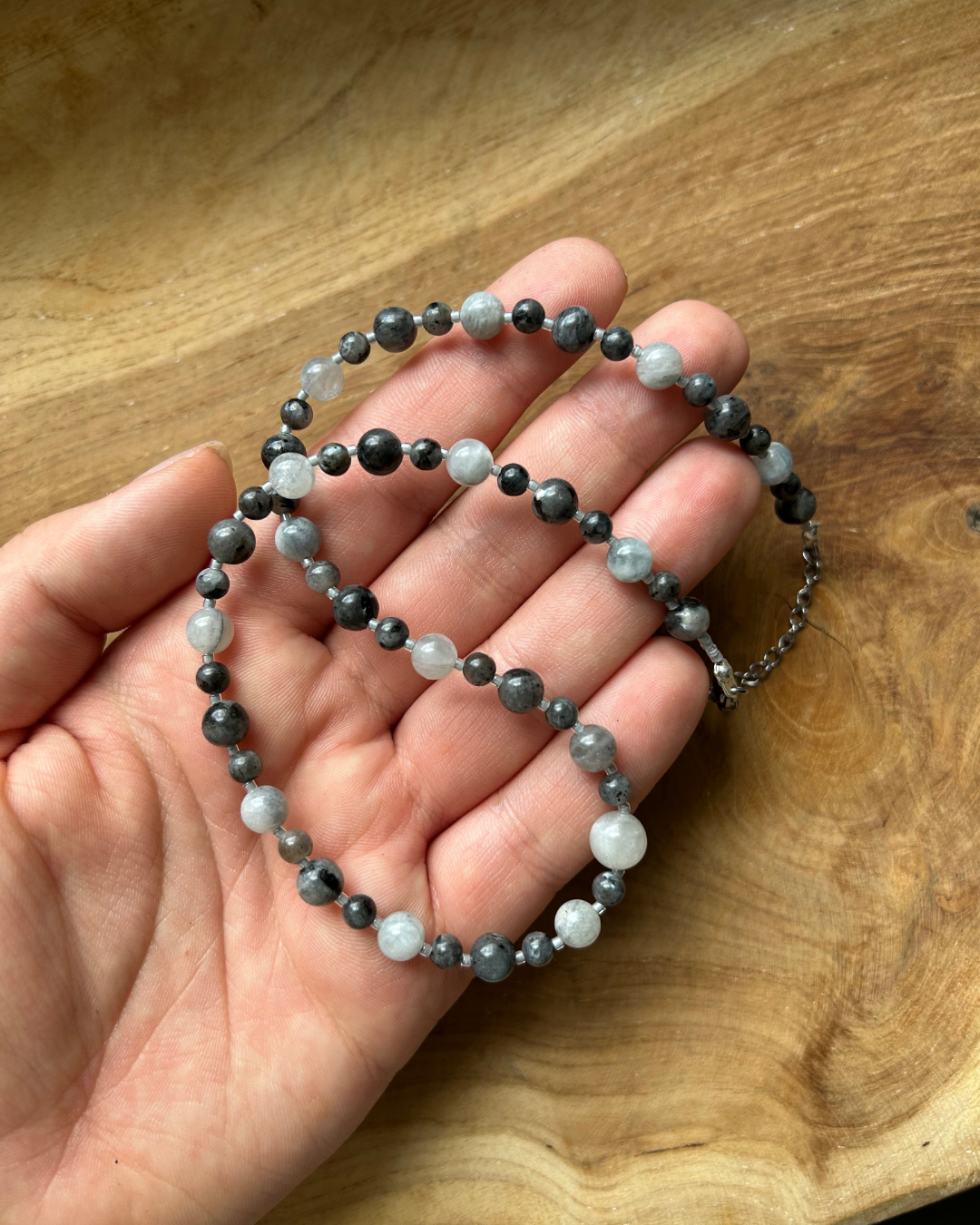 Naszyjnik Monochromatyczny Larvikit i Kamień Księżycowy