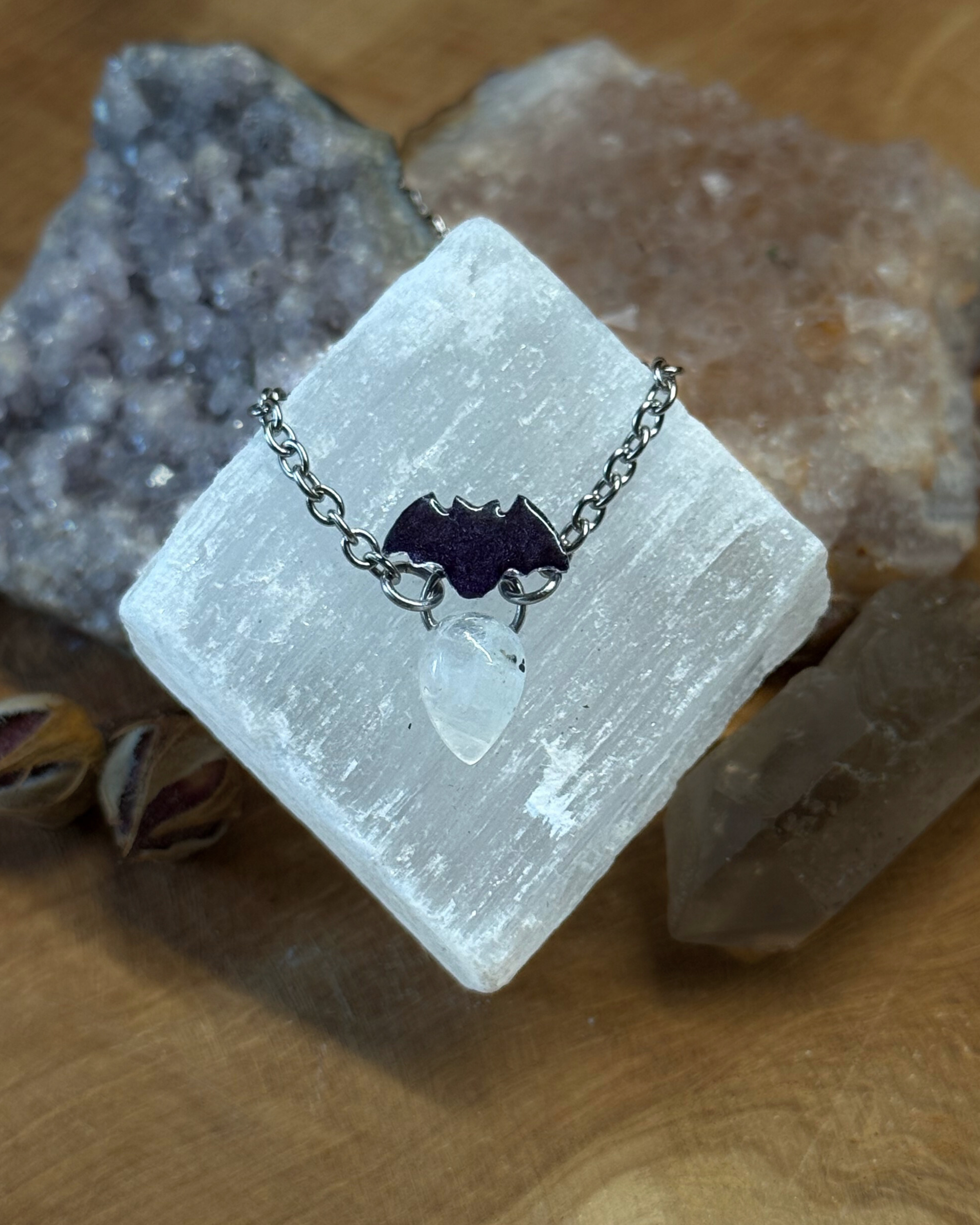 Naszyjnik Nietoperz z Kamieniem Księżycowym