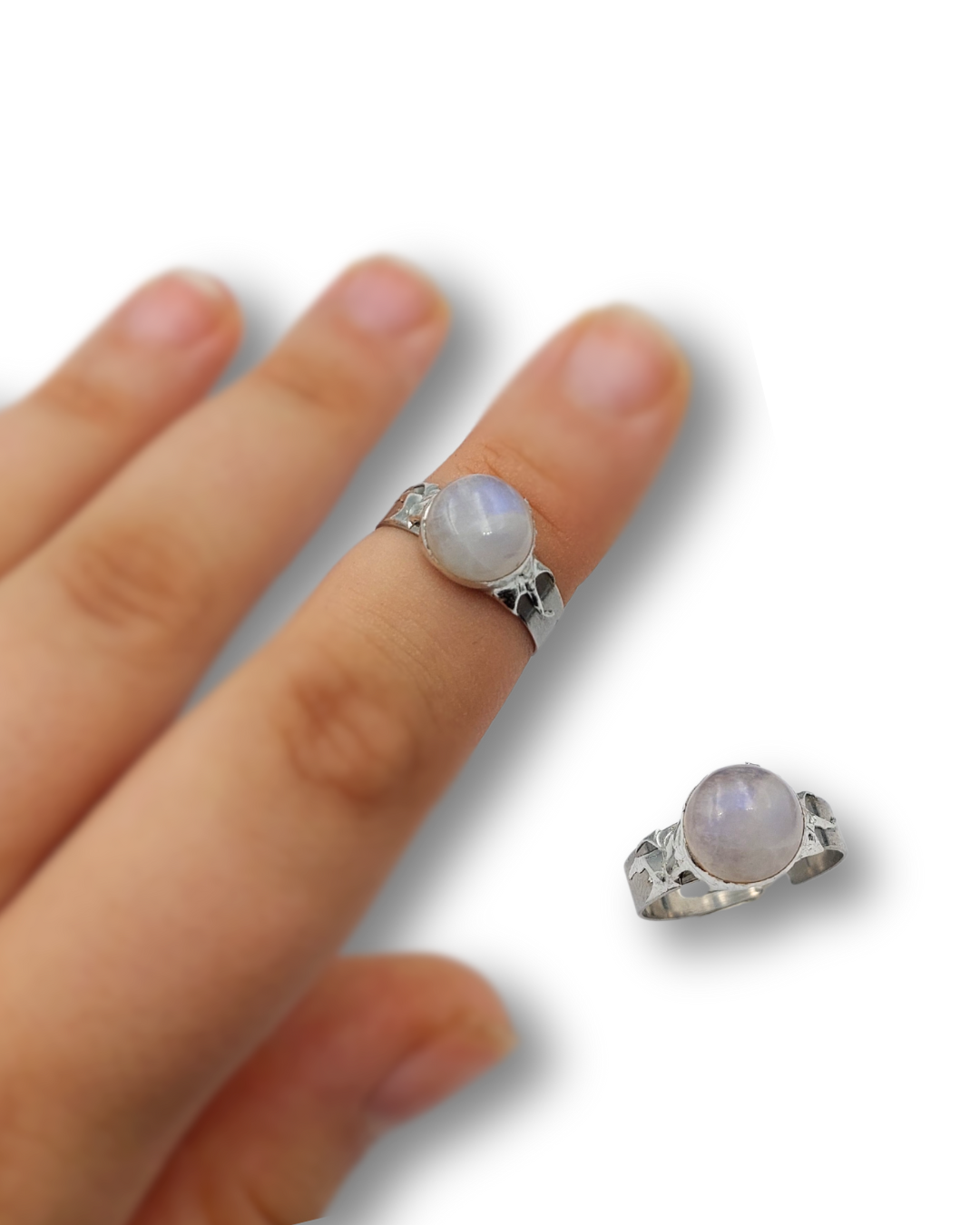 Kamień Księżycowy to minerał posiadający wyjątkowy efekt świetlny, zwany adularyzacją. Jest to intensywna srebrzysto-perłowa poświata na powierzchni minerału, na której można niekiedy dostrzec także błękitny połysk. Kamień ma piękną budowę - wyglądem przypomina kryształ, w którym zatrzymały się mleczne smugi, których układ jest unikalny dla każdego kamienia.