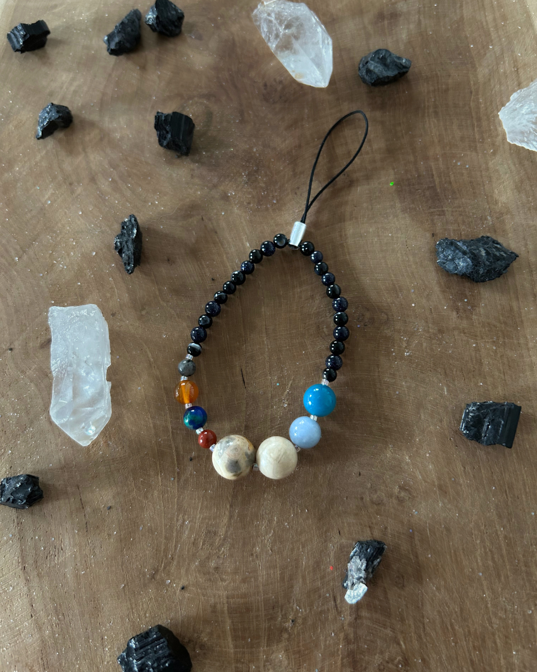 Zawieszka z kolekcji "KOSMOS". Inspirowana planetami Układu Słonecznego. Każda planeta została odwzorowana przez inny rodzaj kamienia: